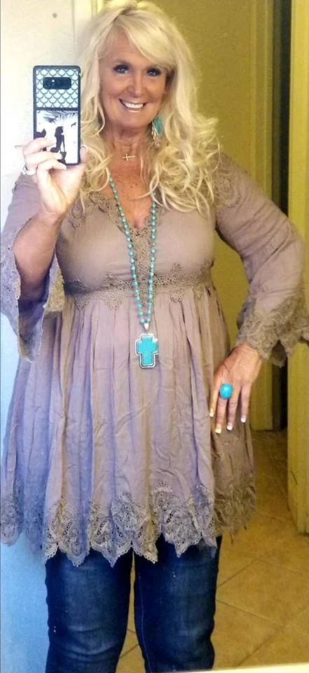 Bust: S-40″ M-42″ L-44″ XL-46″ 1X-48″ 2X-50″