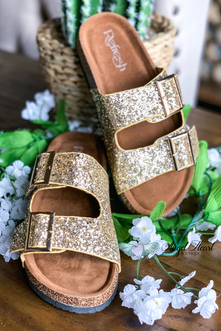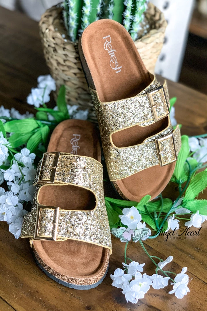 Fashion Go Shoes Shine Bright Buckle Sandals – Champagne Gold – SALE