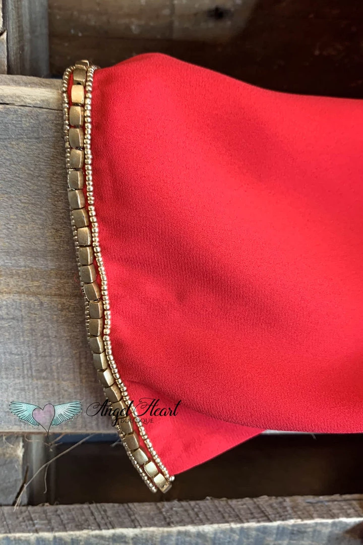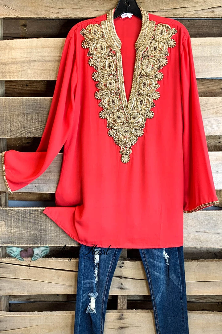 - Coral Tunic w/ Gold Bead & Crystal Detail