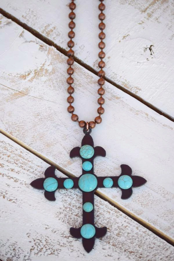 Turquoise Heavan Cross To My Heart Necklace – Turquoise