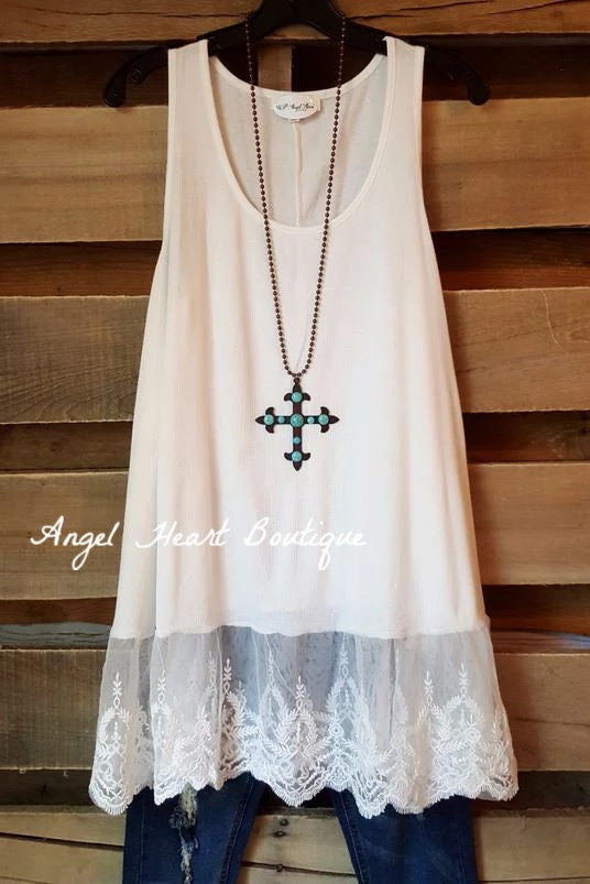 This will be your summer go to tank perfect for any occasion dressing up or down with a lovely lace detail.Â